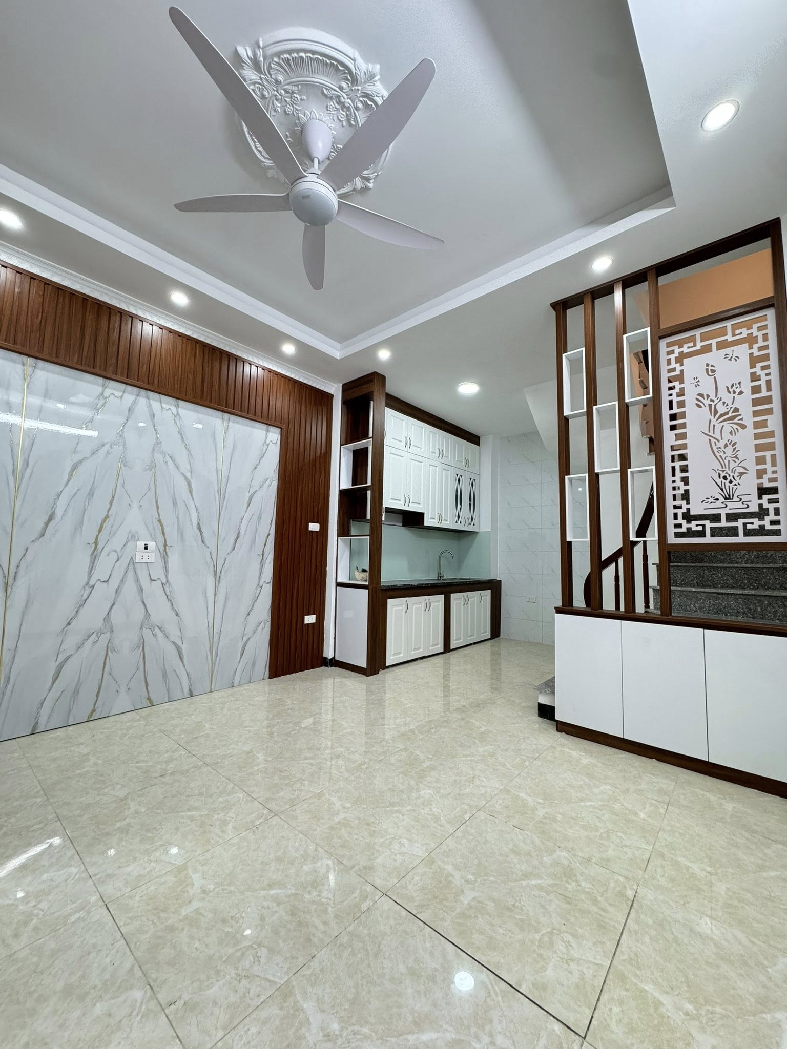 Tiện ích trong lòng bàn chân: chợ lớn Đồng Dinh to đùng,nhu yếu nông sản, thực phẩm, thuỷ hải sản tươi nhảy bơi lội tung tăng, cái gì cũng có, trường học các cấp 1,2 , THPT Thạch Bàn, chỉ 5 phút ra TTTM AEON, Big C, 10 phút sang Hoàng Mai, Hoàn Kiếm, QL5 đi thông tỉnh. Hiện trạng: Nhà mới tinh, thiết kế 5 tầng thông minh, cầu thang cuối nên nhà rất rộng, Full nội thất, Chỉ việc xách vali ở ngay.